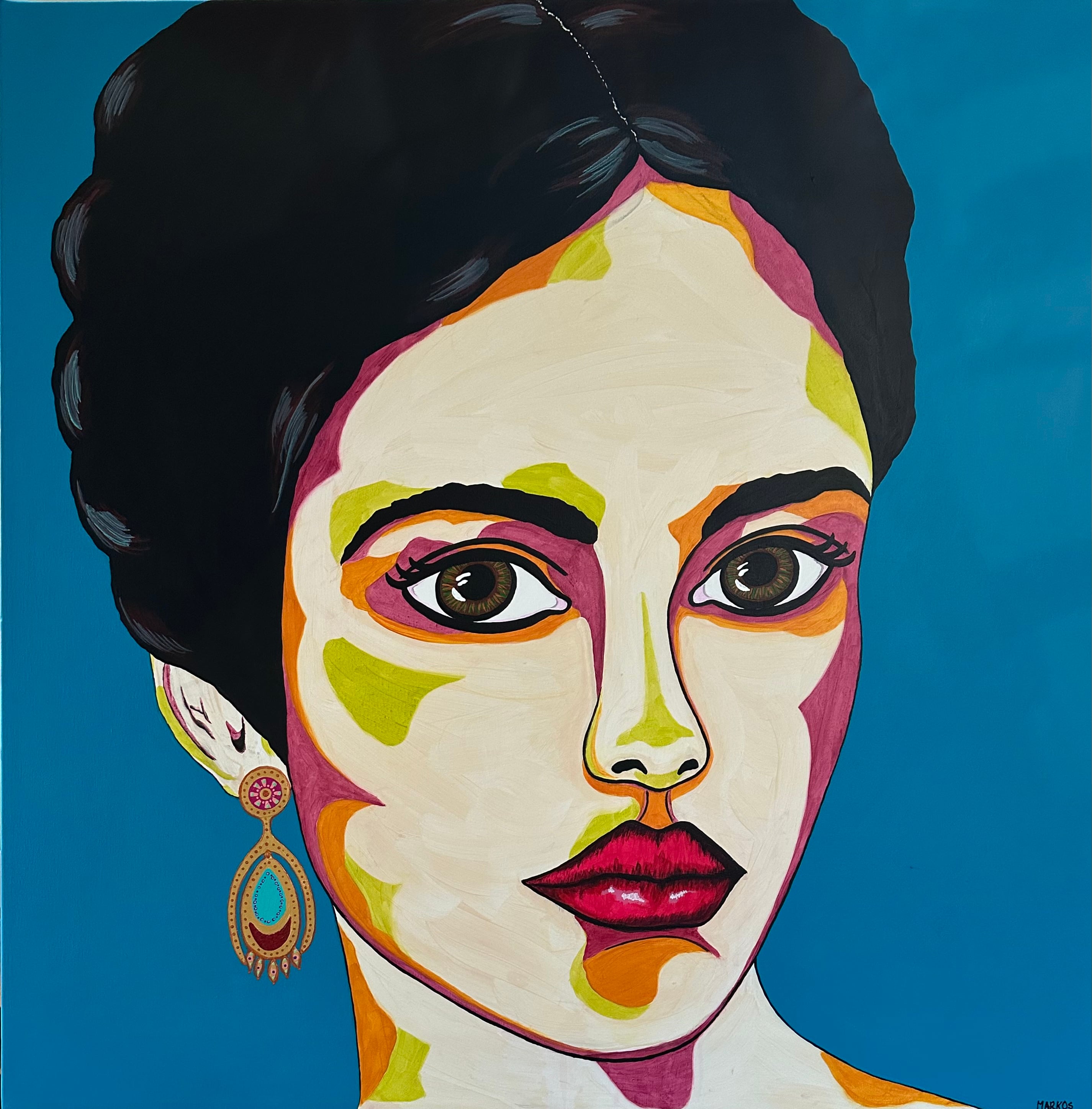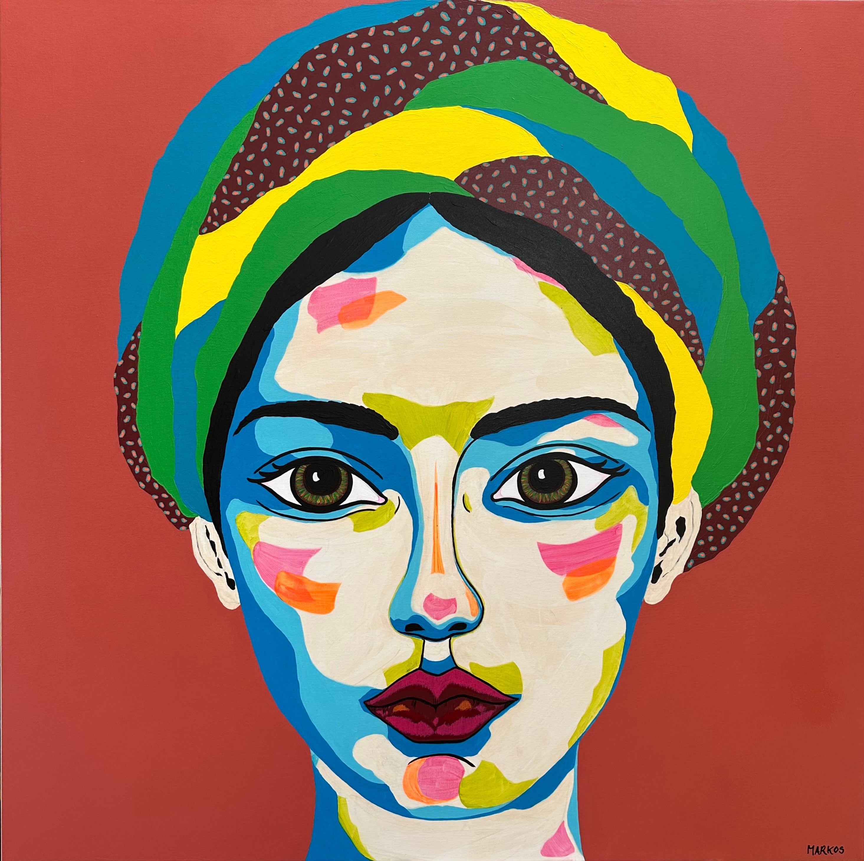 Margith Kostendings portrætunivers er virkelig en anderledes og interessant oplevelse med en stor spændvidde i farvevalg. Der er en rigtig god dynamisk farvesammensætning og velplacerede farvefelter, som skaber liv i portrættet og skærper ens opmærksomhed.